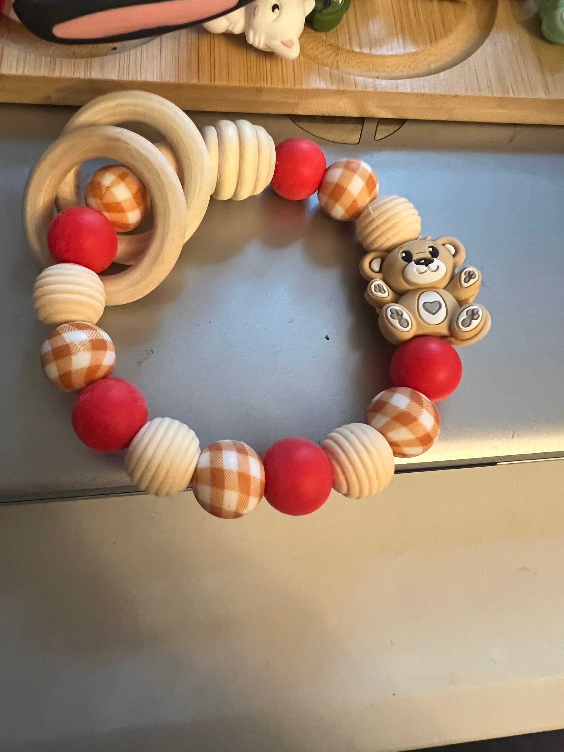 Silicon and wood teething rattles